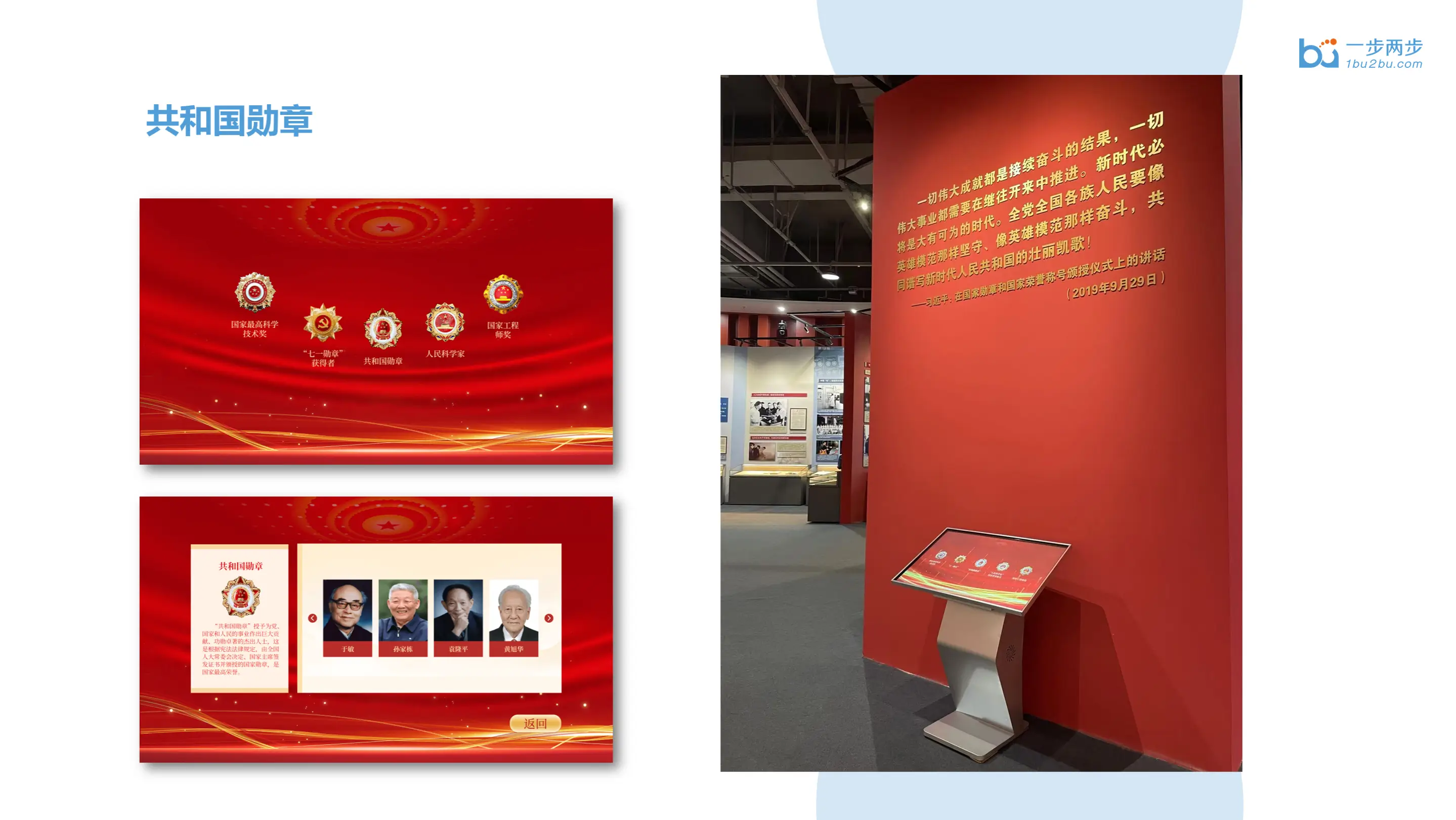 一步两步为“共和国脊梁——中国科学家博物馆馆藏精品展”的线下展厅定制开发了五款安卓应用以及一款移动端Web应用,分别是: